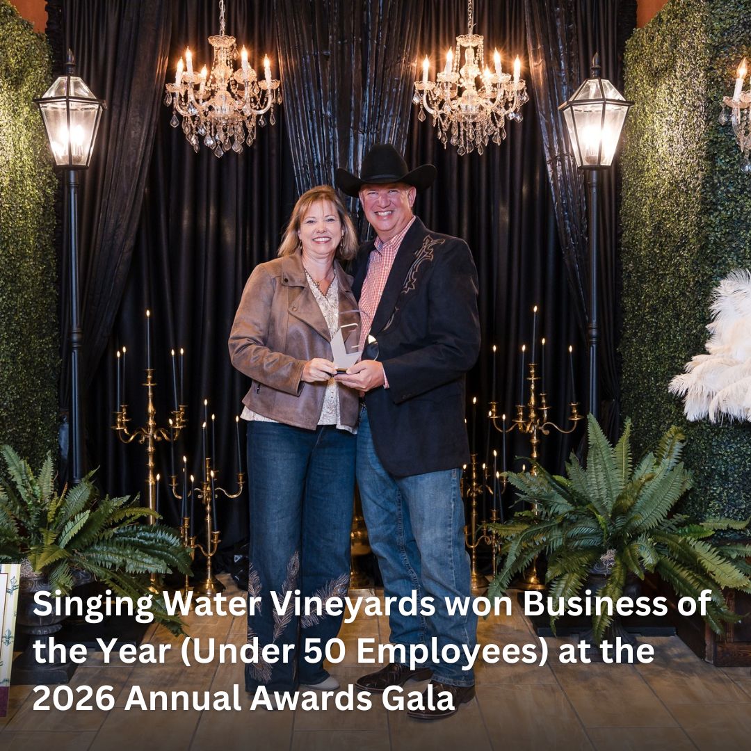 We’ve talked about their award winning wines (they’ve even beat out all the vineyards in California for their Cabernet!), but now Singing Water Vineyards has another feather to stick in their cap: Business of the Year Under 50 Employees!