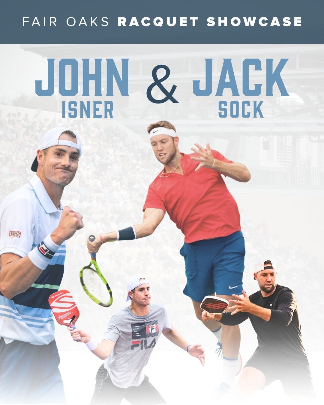 See tennis legends John Isner and Jack Sock in action Saturday from 11:30 am to 4:30 pm. Free admission with RSVP for this family-friendly exhibition.