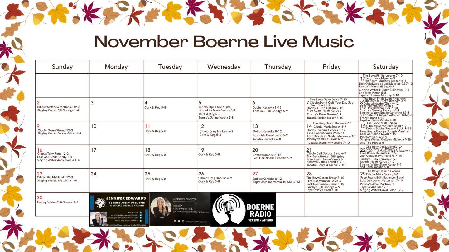 Want to know where all the live music is this weekend? Check out the Boerne Life Music Calendar for the rest of November!