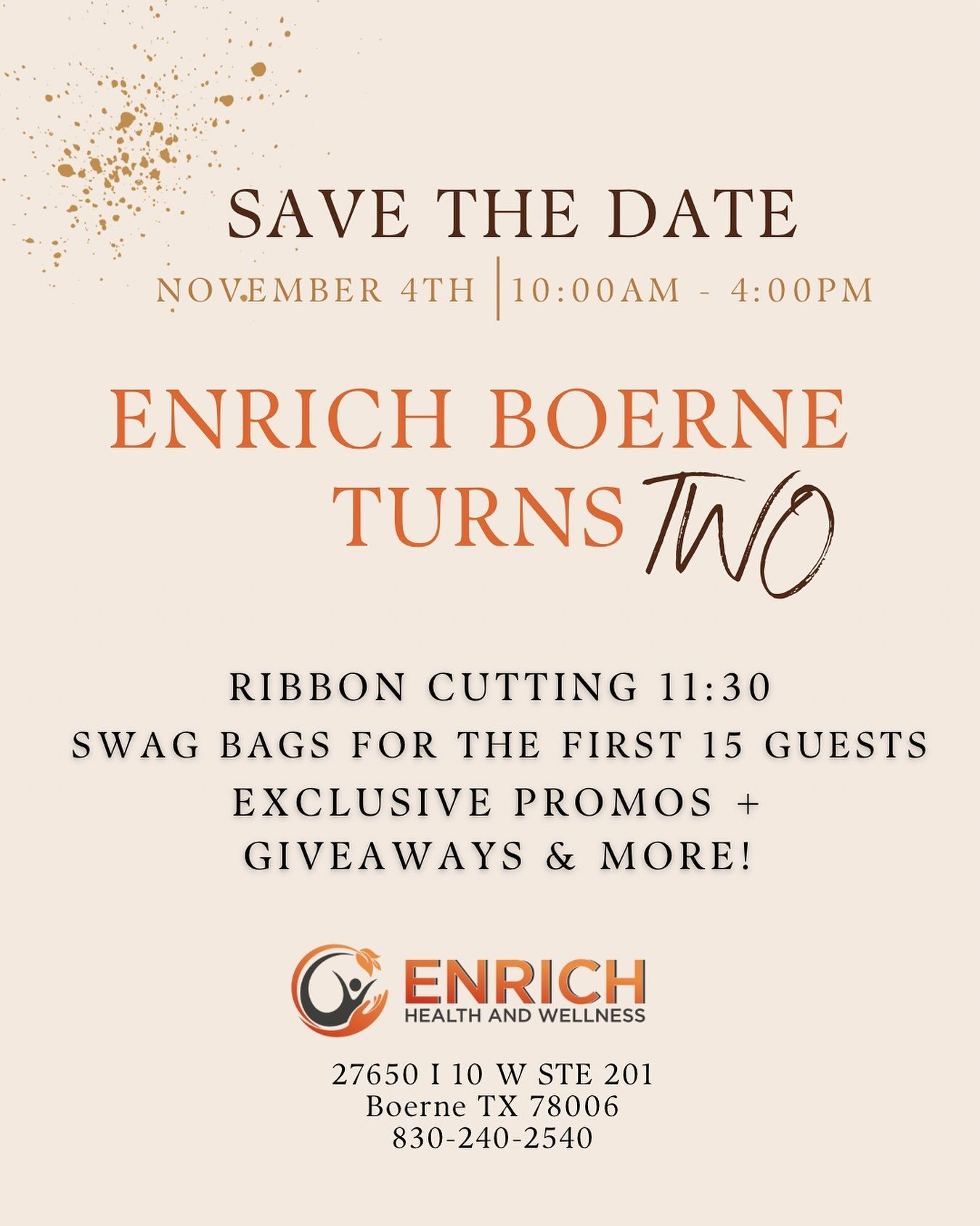 Tomorrow’s the big day for our sponsors at Enrich Health & Wellness! Celebrate two years of Enrich Health & Wellness with giveaways, promos, and swag bags for the first 15 guests.
