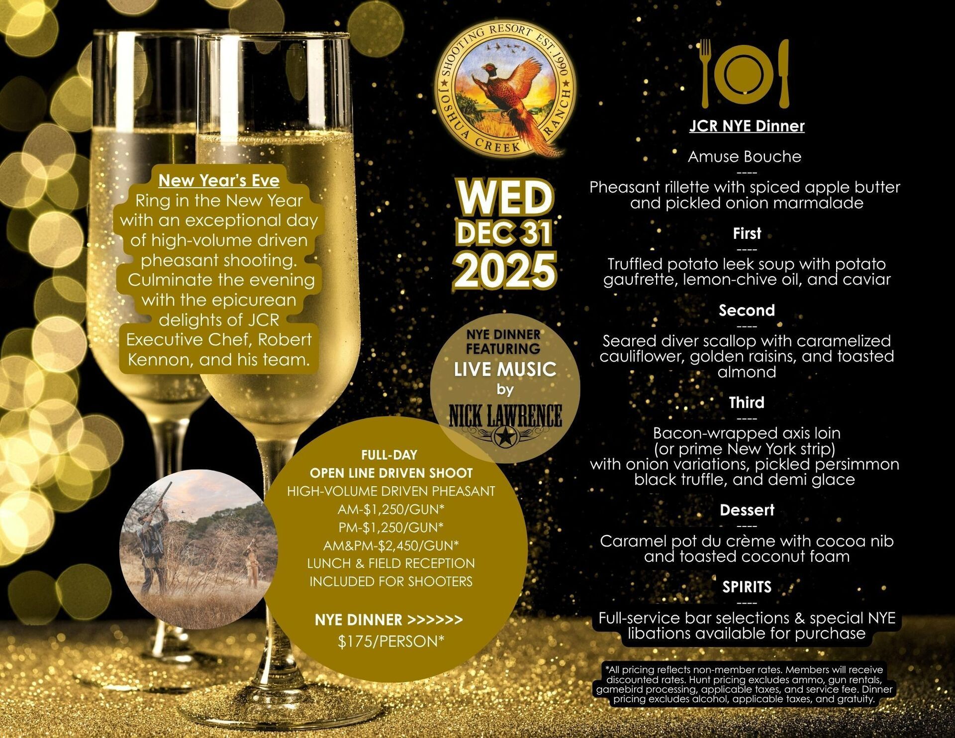 Whether you’re there for the world-class wingshooting, the unforgettable dinner, or both, this is one of the most unique ways to welcome the New Year.