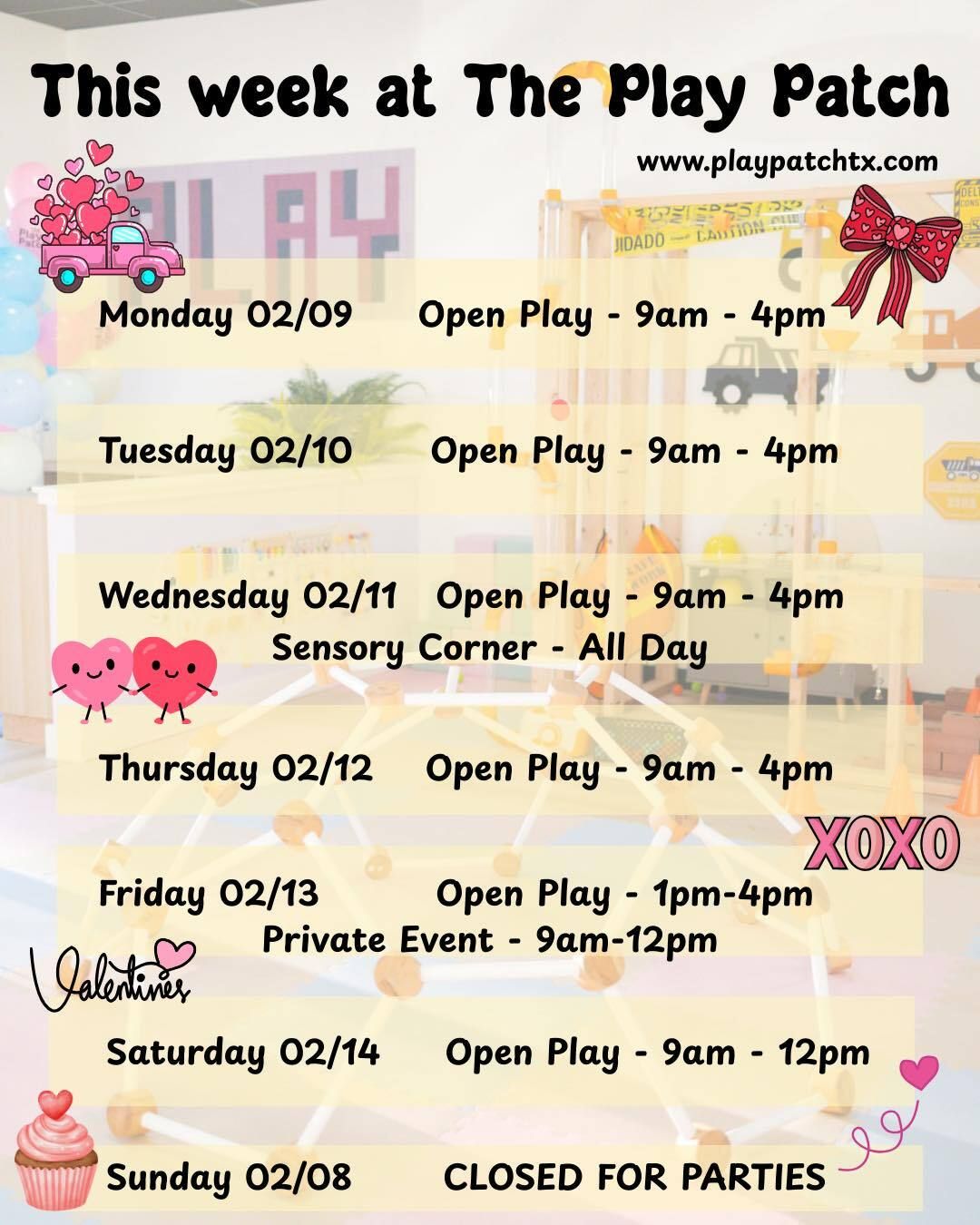 The Play Patch’s Valentine’s Play Date sold out, but don’t worry, there are still plenty of open play options for you and your kiddos this week. We encourage you to book ahead, because it can fill up. And make sure to go prepared to try their delicious coffee while the kids play!