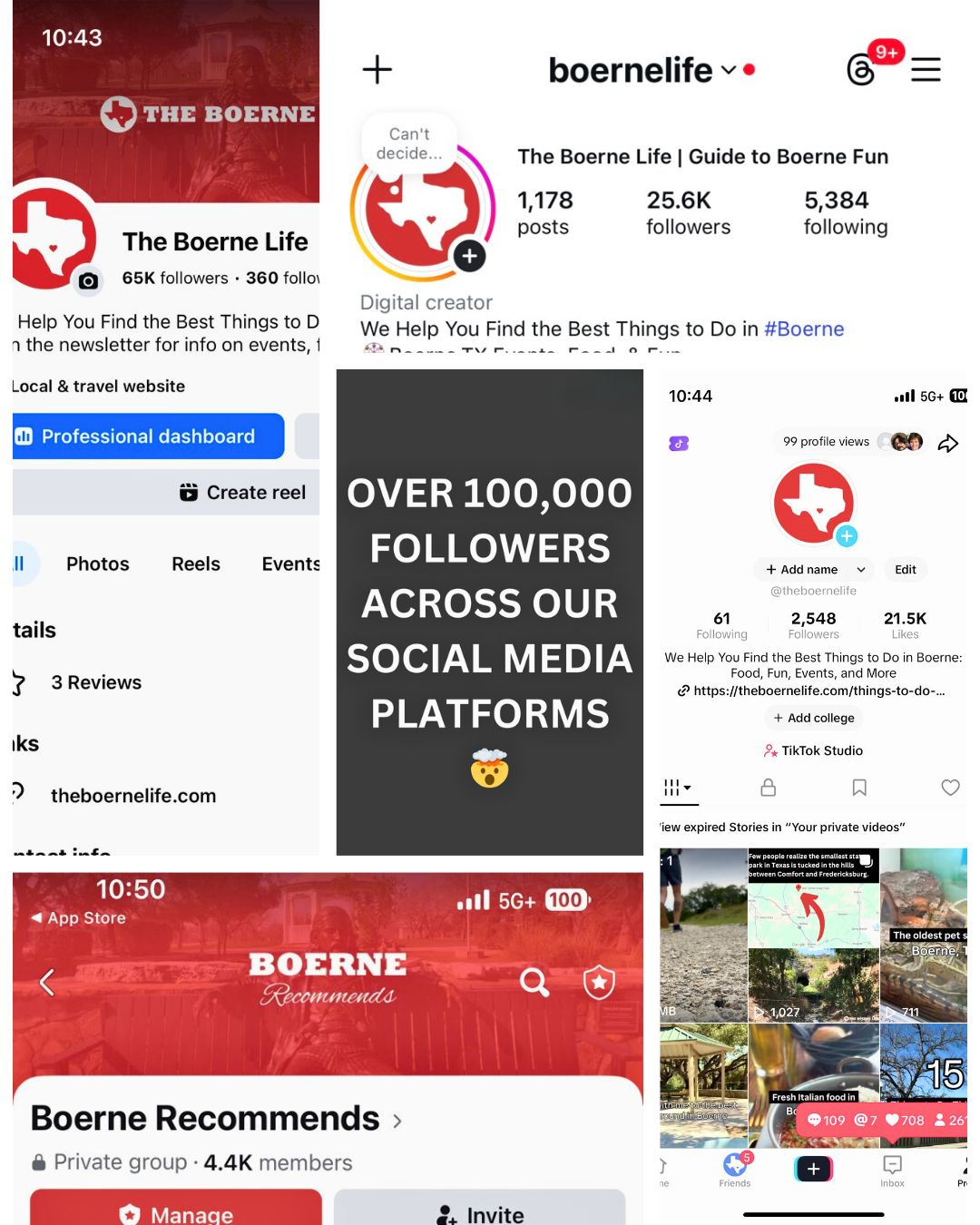 We just passed 100,000 followers across all of our Boerne social media platforms. So thankful for everyone who has followed along and made this venture such a success!