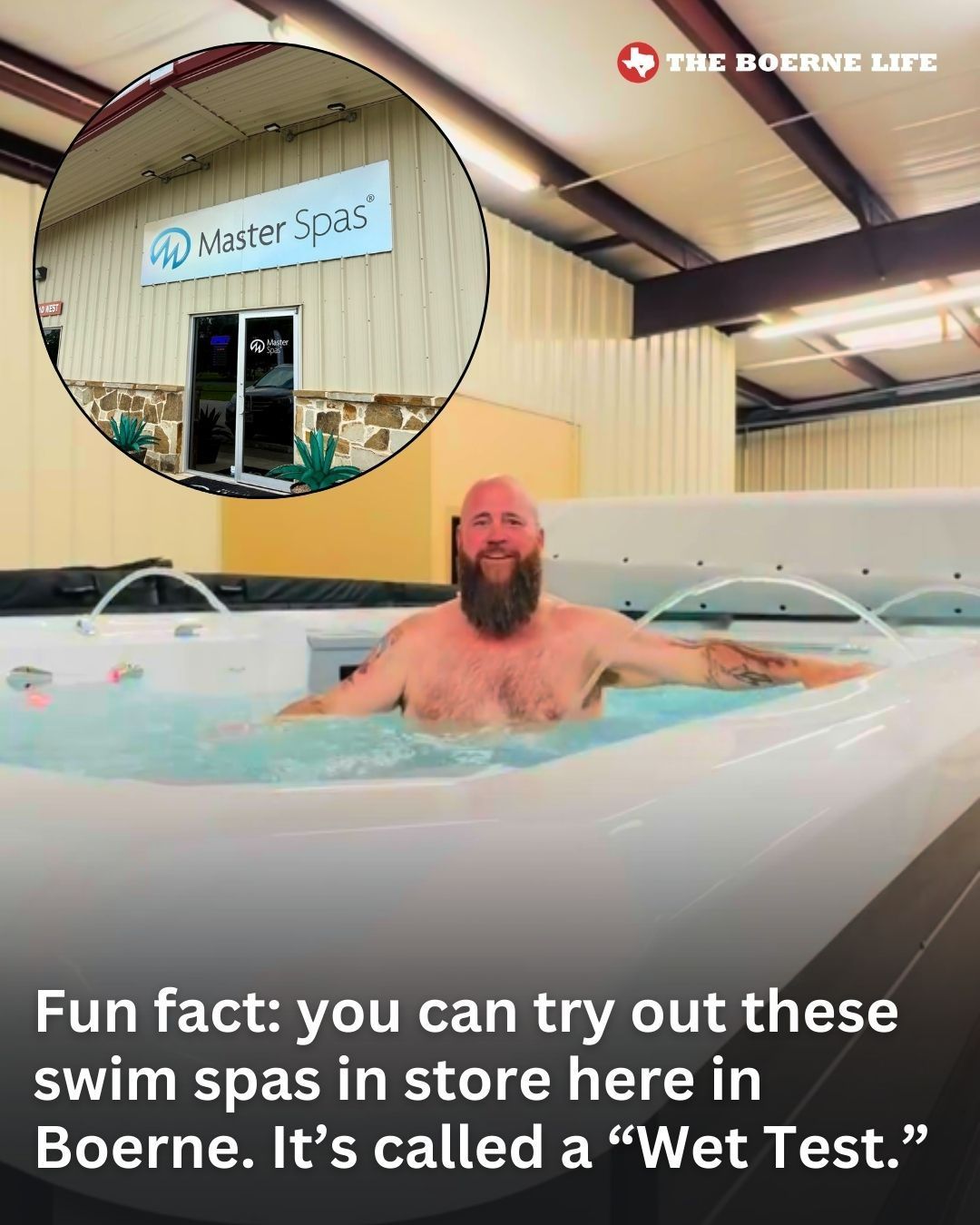 Did you know Boerne has a locally operated Master Spas factory store right next to Faith & Funky Junk? You can actually stop in and test out their swim spas, hot tubs, cold plunges, and more before deciding what’s right for you.