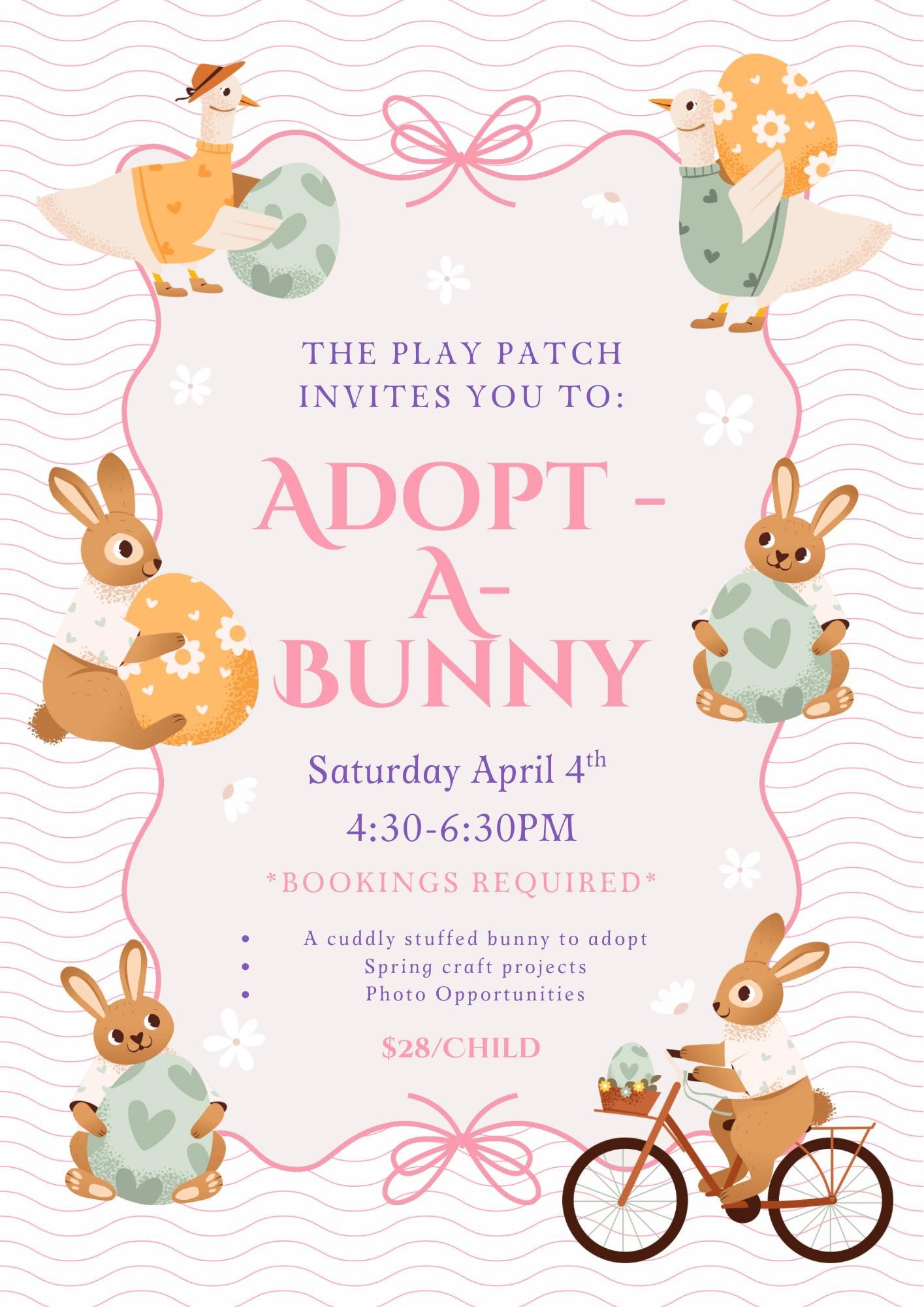 Looking for a fun spring activity for the kids? The Play Patch in Fair Oaks Ranch is hosting an Adopt-A-Bunny event on April 4 from 4:30–6:30 PM at 9091 Fair Oaks Pkwy, Suite 206, where each child gets to pick out their own stuffed bunny to take home.