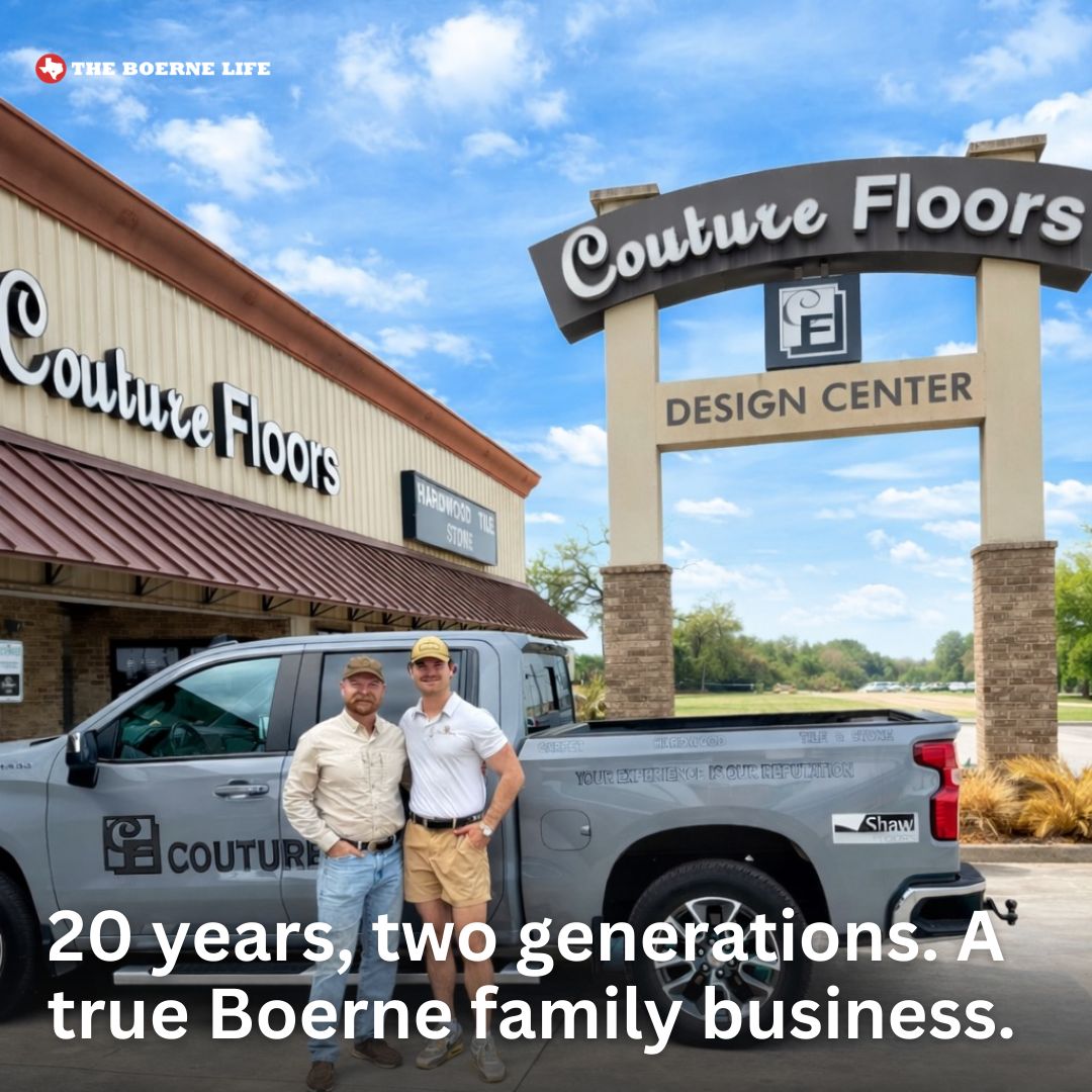 Couture Floors is celebrating 20 years in business right here in Boerne. Founded by longtime local Jed Mazour and Dan Majetich, the company has become a go-to for carpet, hardwood, LVP, tile, and custom shower work across the Hill Country.
