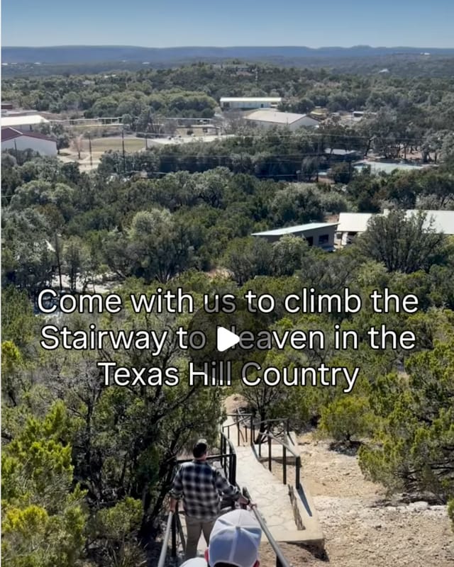 If you’re up for a quick adventure, Old Baldy Park in Wimberley is one of those spots that delivers big views with minimal time. The hike itself is only about .2 miles, but it’s a straight climb up 218 stone steps that takes you to the top of a 1,182-foot hill overlooking the Hill Country.