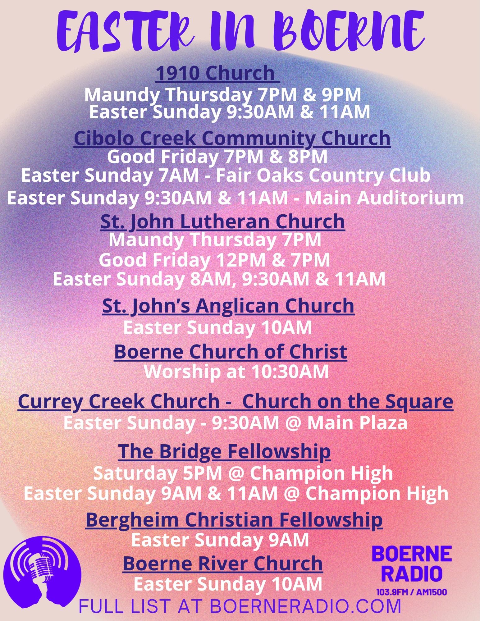 Easter is this weekend, and churches across Boerne are getting ready for a full weekend of services and gatherings. Whether youâre looking for a traditional service or something more modern, there are plenty of options throughout the area to fit what youâre looking for.